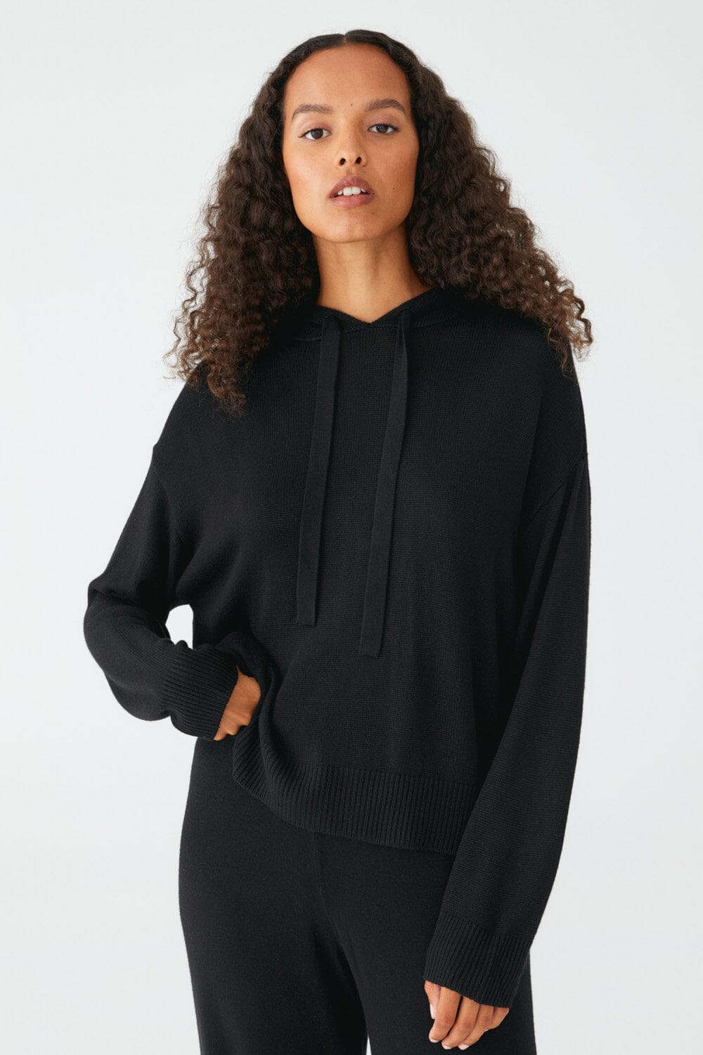 Mjúk og þægileg hettupeysa með loose fit sniði sem hentar við öll tækifæri – hvort sem það er heima í kósí, í vinnunni eða á æfingu. Peysan er úr bambus lyocell og örlitlu magni af teygju (elastane) sem gerir hana einstaklega mjúka, sveigjanlega og slitsterka.