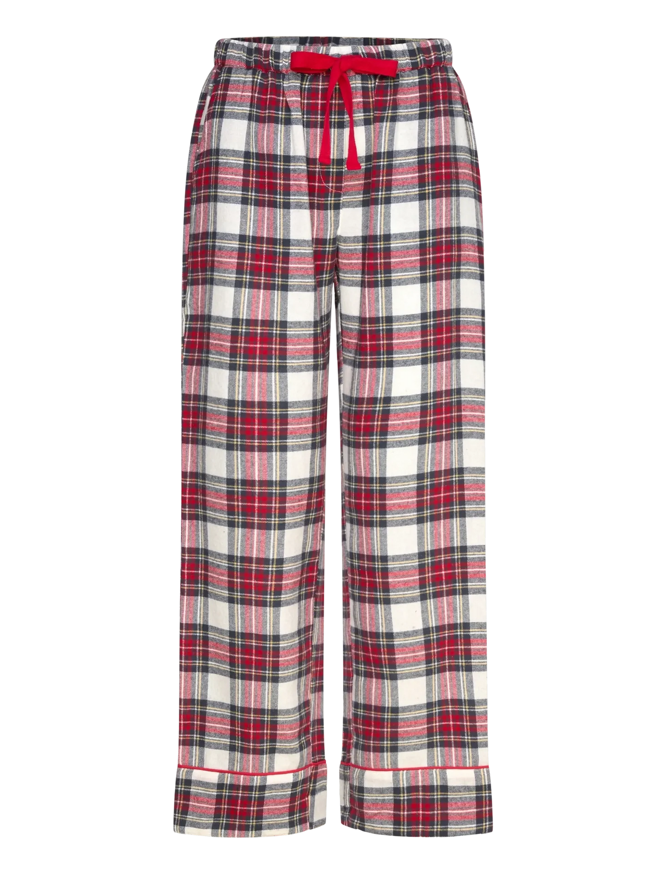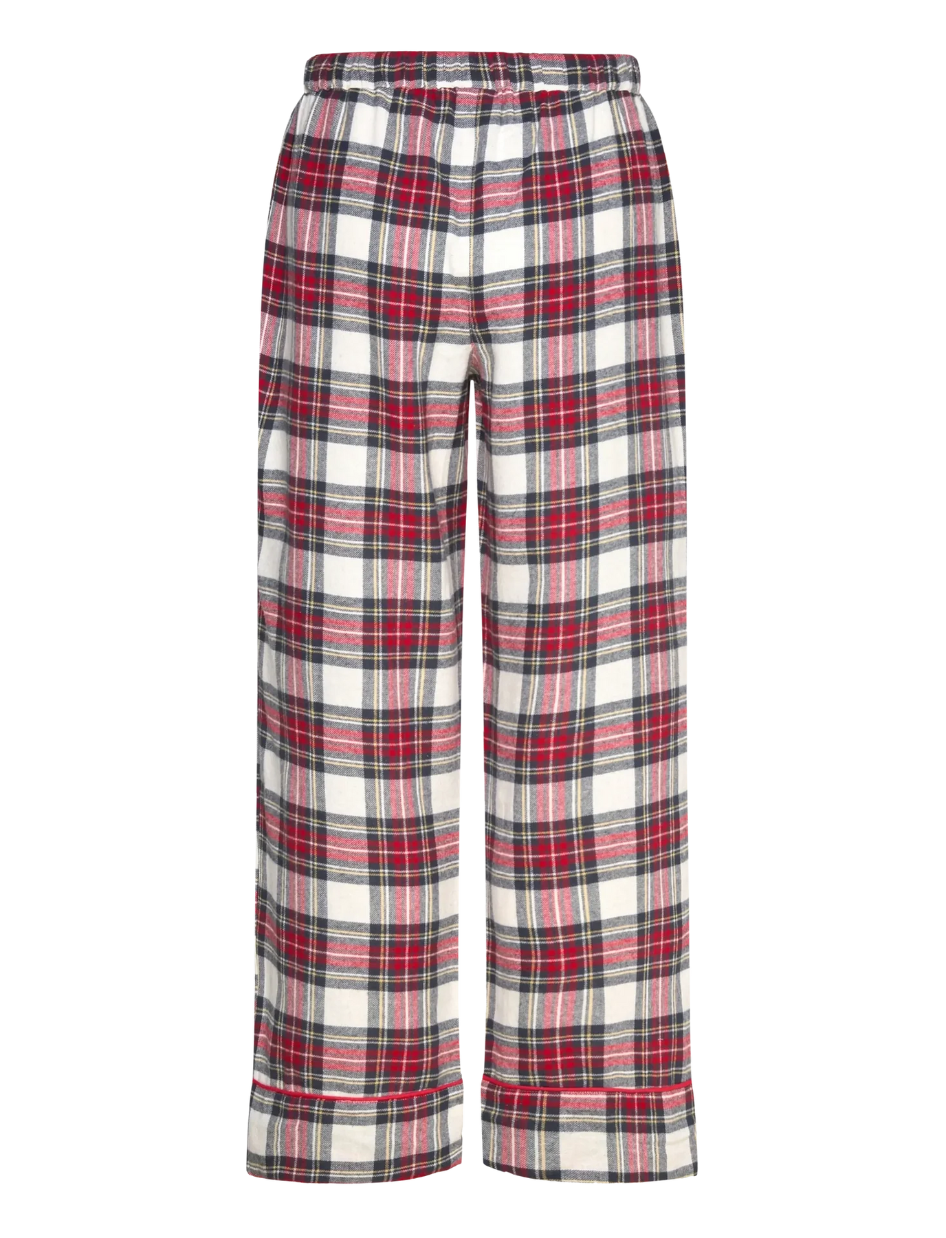 Þessar mjúku og þægilegu buxur úr lífrænni bómull eru með sígiltu köflóttu mynstri. Þær eru fullkomnar fyrir afslappaðar stundir heima, með teygjanlegu mitti sem auðveldar klæðnað og beinum skálmum sem gefa þeim tímalaust og stílhreint útlit.