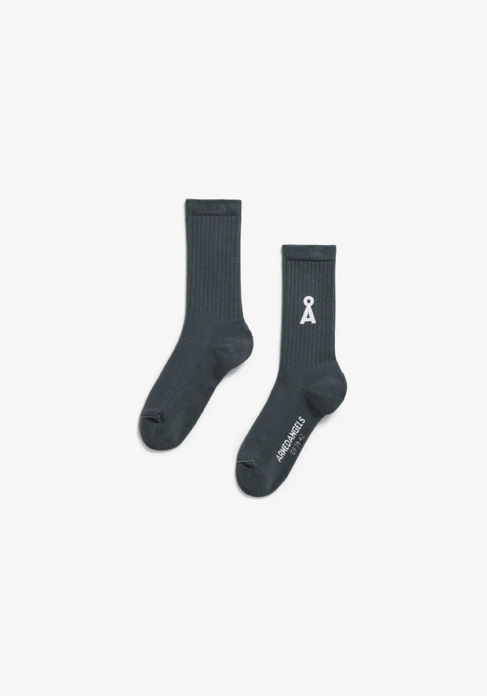 SAAMUS BOLD sokkarnir eru stílhreinir sokkar úr lífrænni bómull. Þeir henta öllum kynjum. Sokkarnir eru mjúkir og haldast vel á fæti. Með Armedangels logoi . Efni: 78% lífræn bómull 20% endurunnið polýester og 2% teygja. Þvottaleiðbeiningar: Þvoist á 30 gráður og ekki setja í þurrkara.
