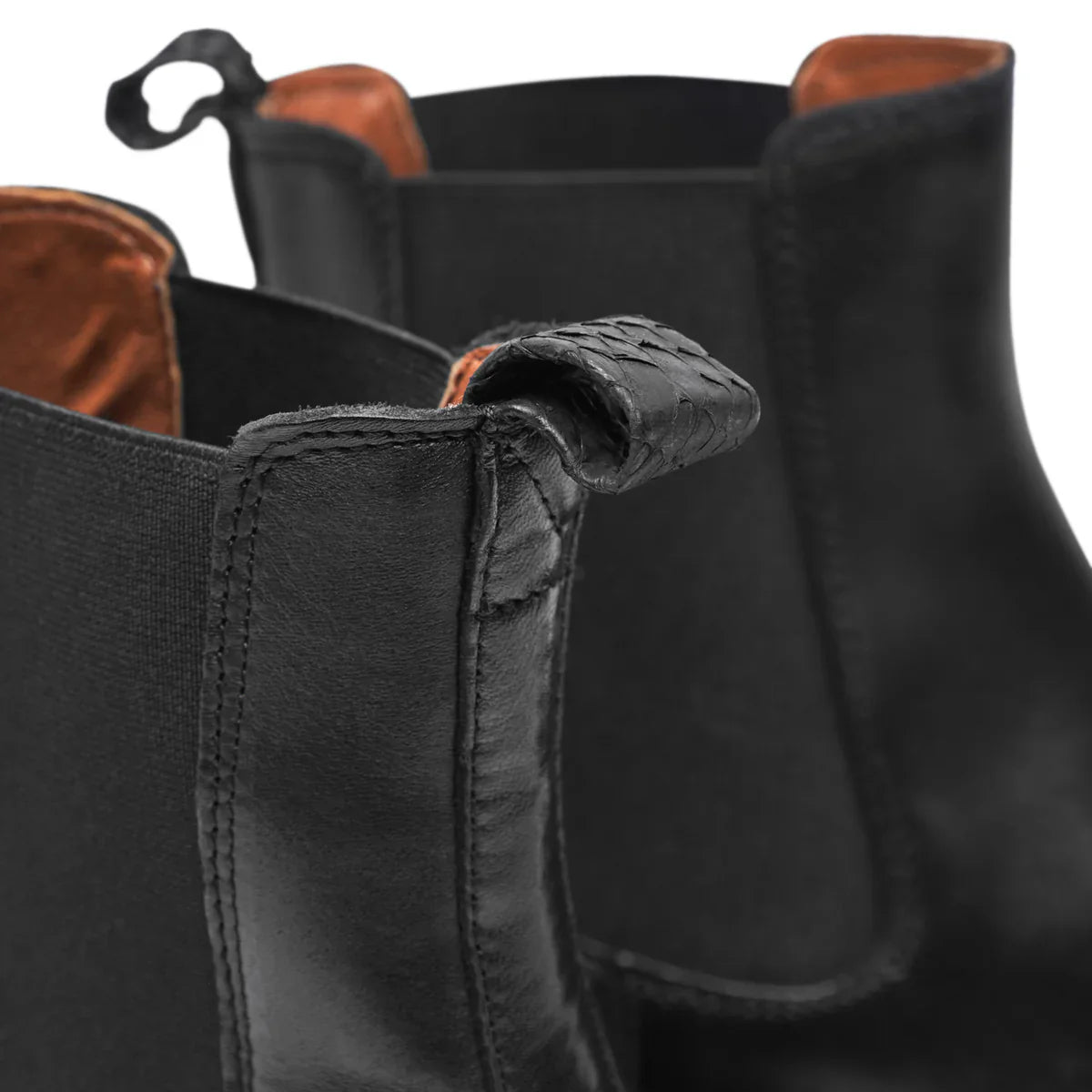 Sanna Chelsea-stígvélin eru unnin úr 100% LWG-vottuðu leðri með einstaklega fallegum smáatriðum úr endurunnu fiskileðri, sem sameinar endingargæði og klassíska hönnun. Andar vel með mjúku örmíkrófóðri sem veitir þægindi allan daginn, og léttur TR-gúmmísóli sem veitir gott grip og mýkt.