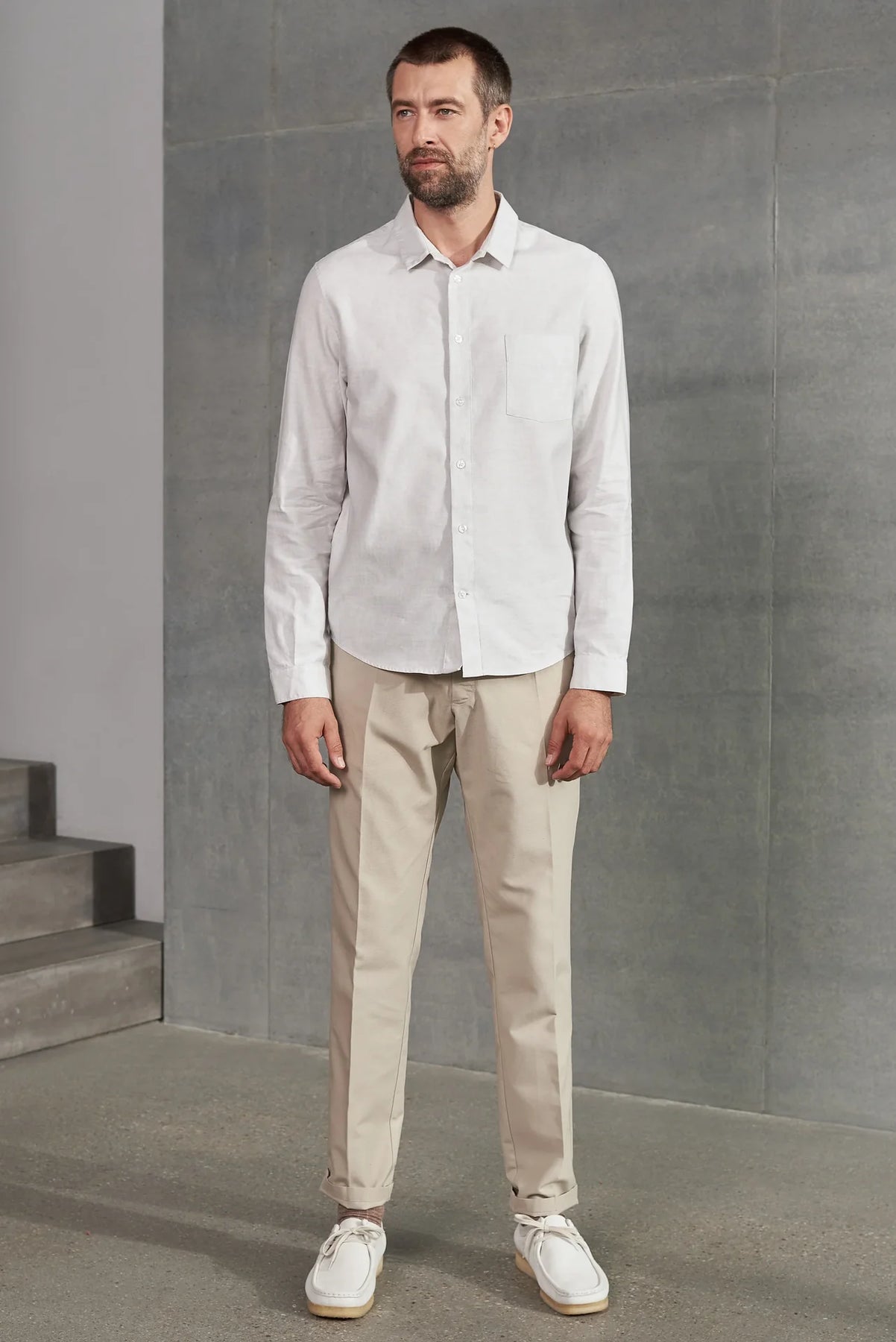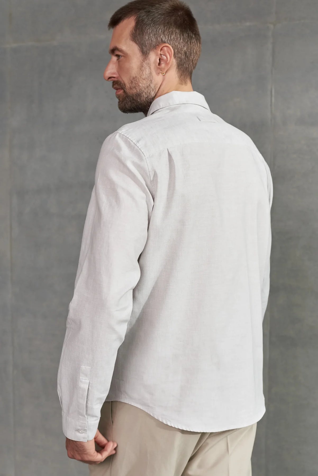 Beina sniðið situr þægilega án þess að vera of þröngt og skapar fágað en afslappað útlit. Skyrtan er auðvelt að para við gallabuxur, chinos eða léttan jakka – frá casual yfir í smart-casual stíl.
