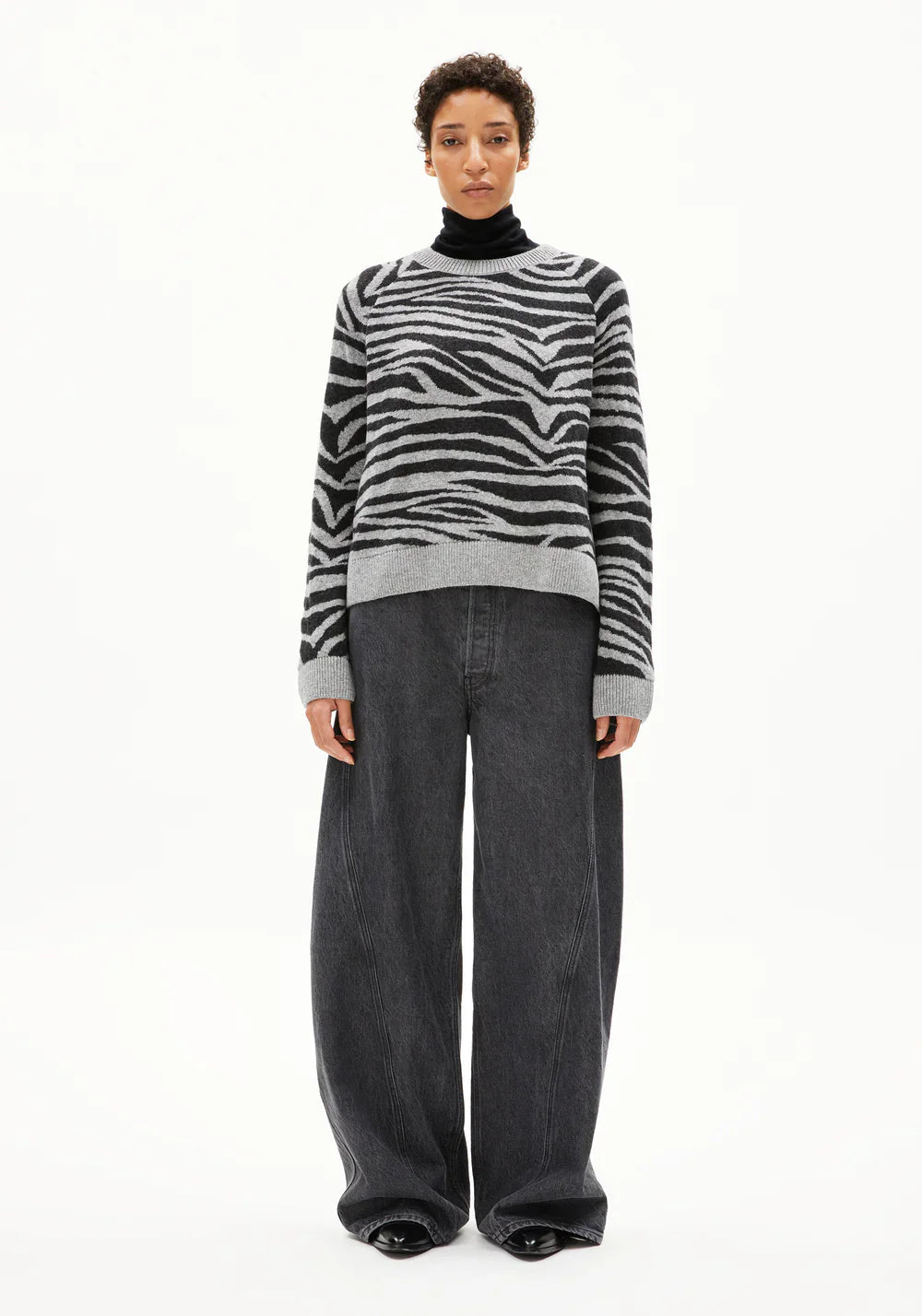 Laust snið, hringhálsmál og klassísk hönnun sem gerir hana auðvelda að para við allt – gallabuxur, pilsa eða undir jakka.