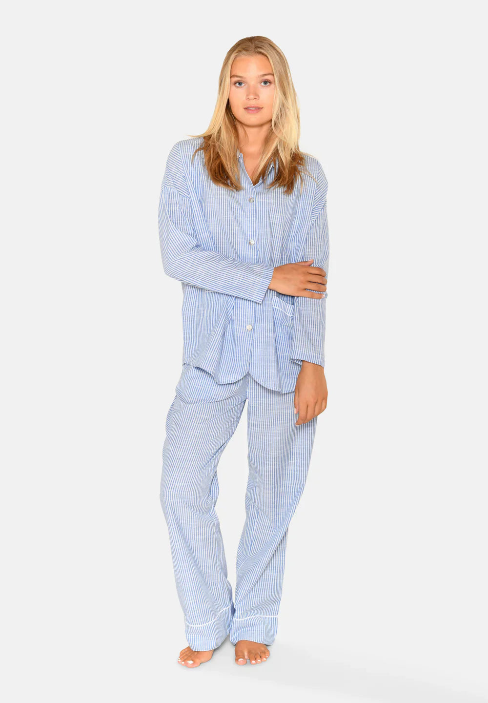 Amanda Shirt hefur klassískt röndótt mynstur og laust, afslappað snið sem gerir hana fullkomna til svefns eða notalegra stunda heima.